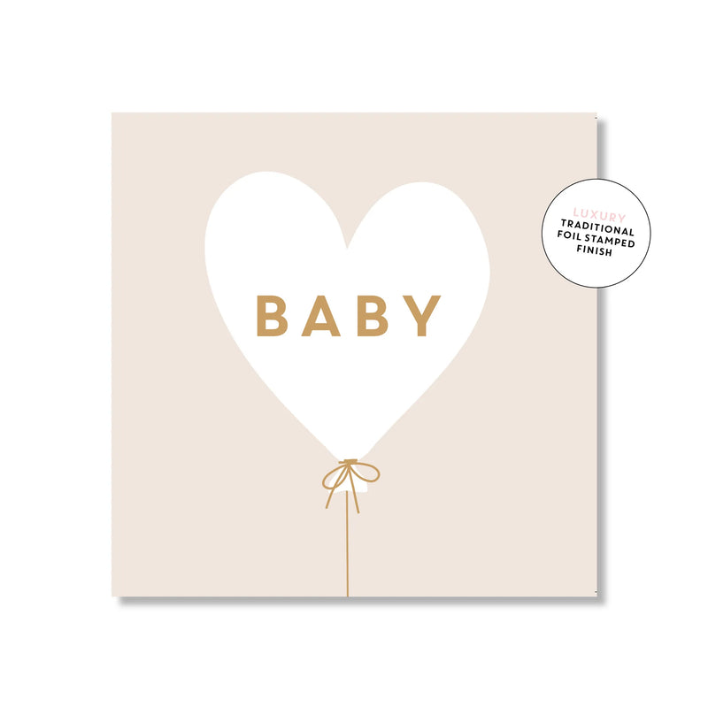 Just Smitten Baby Heart Balloon Beige Square | Greeting Card